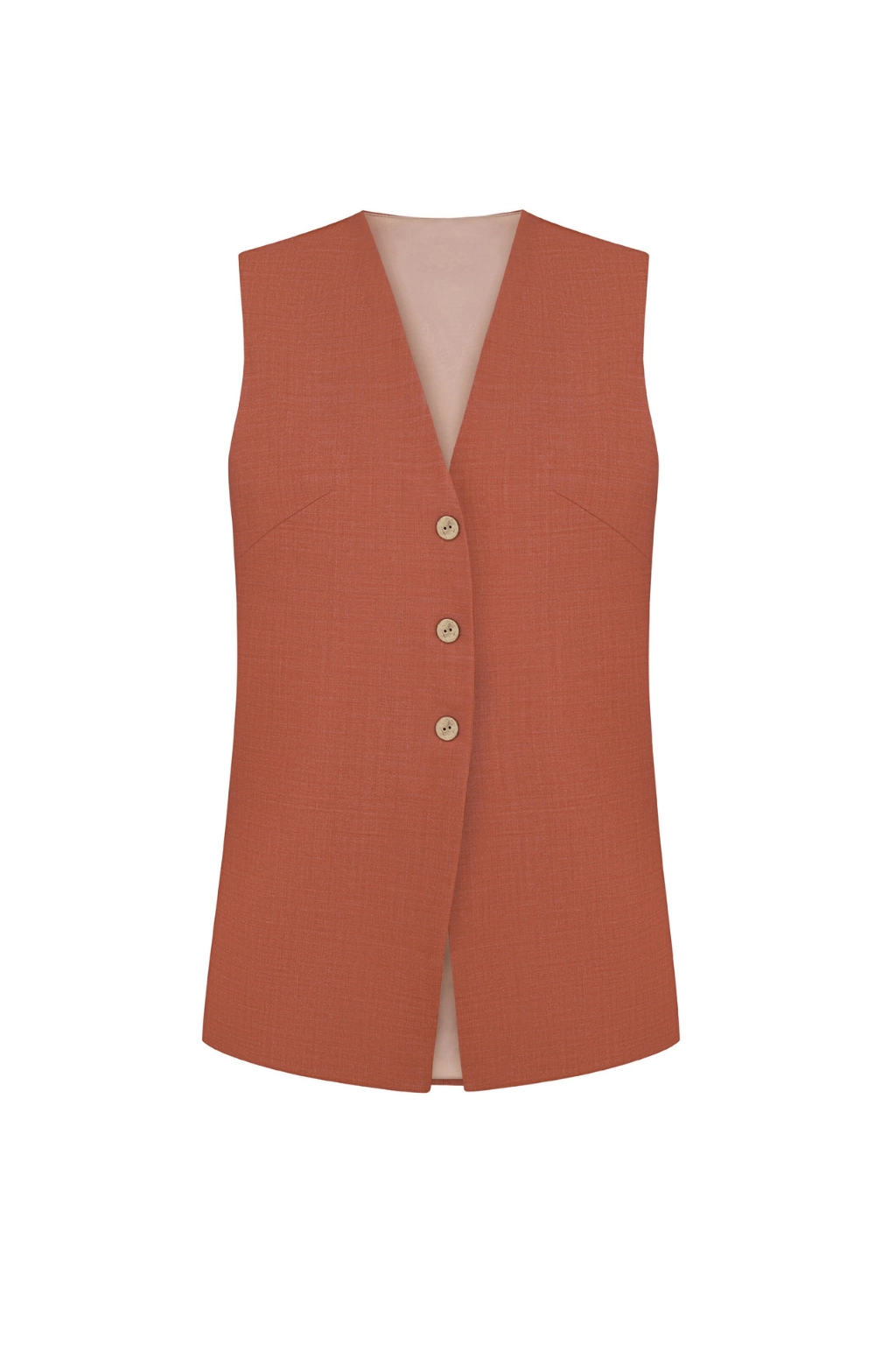 Жилет на гудзиках з тонким поясом теракот